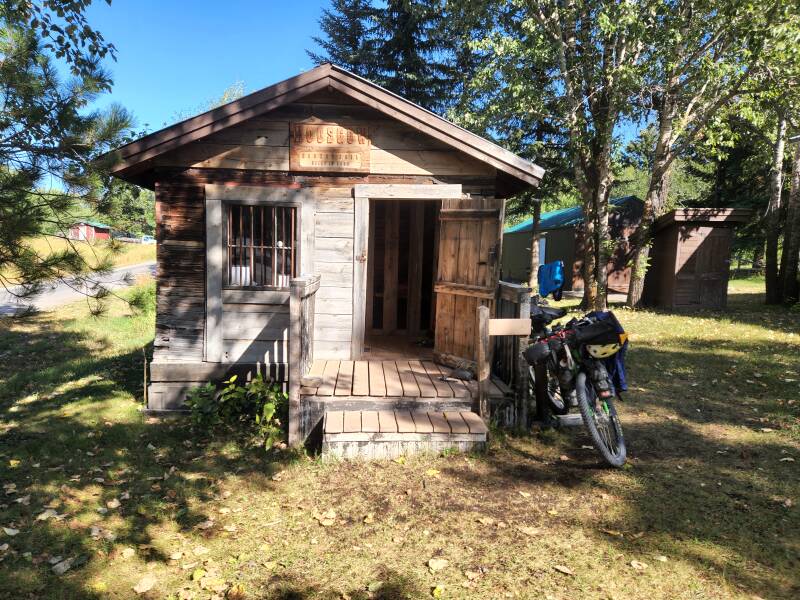 The ride took us past some lovely wee lakes and some more forest before returning us to civilization in Ovando. Ovando is a tiny wee town that has gone out of its way to cater to cyclists. For $5 you can stay in a teepee, a wagon, the church, the jailhouse or your own tent. We chose the jailhouse! The general store has one of everything and the Blackfoot Angler fishing shop has everything the general store doesn't. There is a cafe and just up the road a bar and grill where we had one of our very few nights out. Burgers and fries for dinner!