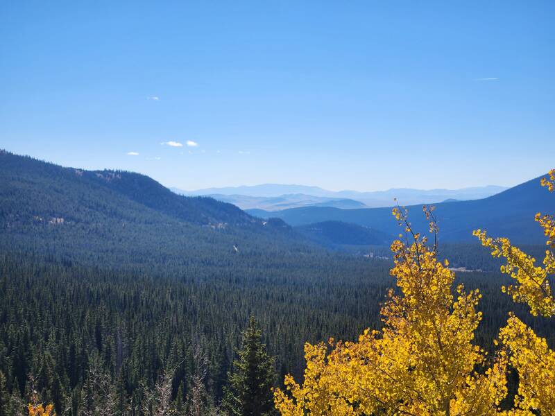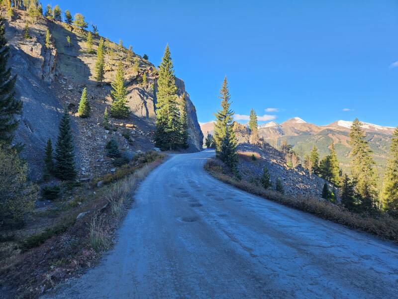 We started by heading back down 200m vertical to pick up the Boreas Pass Road again. What a glorious climb up rail trail gradient to 3500m - our highest elevation to date. A lot of the trees this high have already lost their colour but the scenery is still stunning. The train track was developed back in the late 1800s and the last train passed through in 1938.