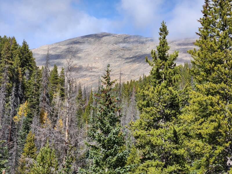 We were fascinated by the beaver dams we saw today. No beavers but some impressive architecture on both sides of the pass. Still no moose though much to Gordon's disappointment.