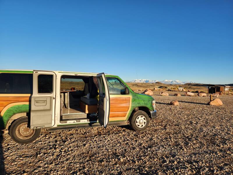 This morning we woke to fresh snow all around and there was still some left in the park as we wandered around but it was a stunning, sunny day, albeit cool. I wore my long johns all day so I guess I will keep them on for tonight as well. We are both glad of the van in which we can cope with these cold nights in comfort!