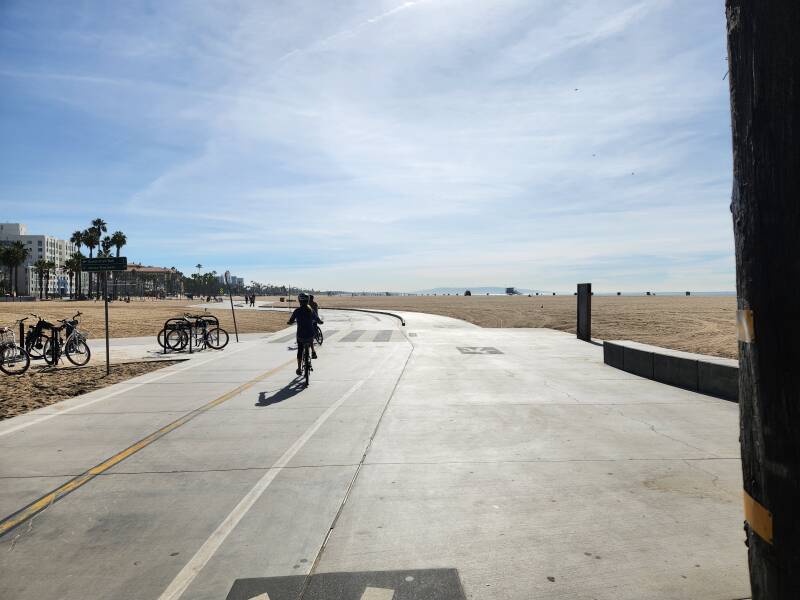 After dropping off the van (with only 200 miles over our 100 mile per day limit much to our pleasure!), we negotiated the busy roads around LAX and out to the coast. Once on the coast we followed the designated bike path up to Santa Monica Pier for a look-see before turning back round and heading south toward our Warmshowers host.
