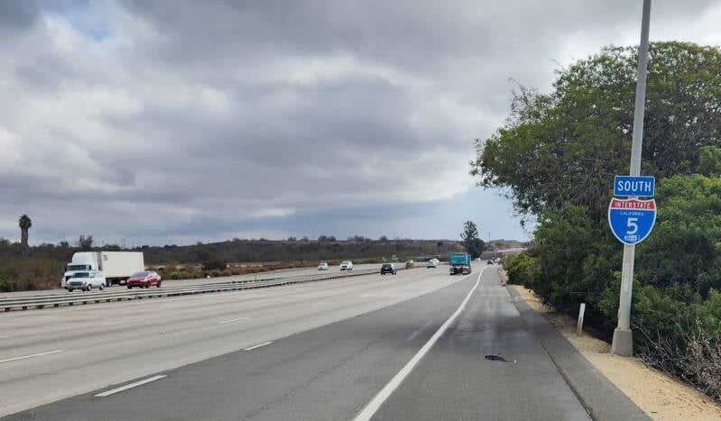 After a brief but heavy rain shower, we then entered Interstate 5 for 12 kilometers. It was very busy and loud but the shoulder was huge so it was not too bad all things considered. American citizens are permitted to ride directly through Camp Pendleton but not us foreigners unfortunately so we get the Interstate!