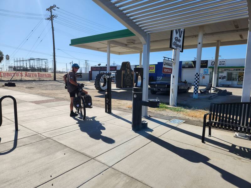 We did a quick food shop, topped up our water at the bus stop (check out the photo of the local bus stop, they were all the same that we could see!), and then started another solid road slog back to the Salton Sea. A brief stop back at the bakery in Mecca again and eventually we made it to the Salton Sea State Park campground. The website told us it was full but there is not a soul here other than us and a couple of campers over the way. It's a beautiful spot. The only downside is that the showers take tokens which you have to get at the ranger station which is closed. No shower for us as the cold water won't run either! It's been 5 days without a shower and we are both a bit stinky! RV park tomorrow night I think!