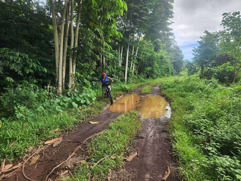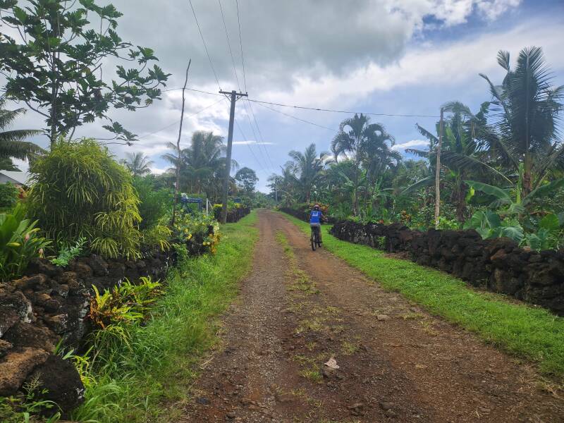 After we saw two groups off to the ferry heading toward Savaii, Lulu and I headed into the hinterland behind Outdoor Samoa for a mountainbike ride. The purpose today's ride was to check out the trails that were used before covid but have not been revisited since. Most is a mix of 4x4 and gravel tracks and this was all passable. The section up onto fish mountain was too overgrown to access so we headed back to base. On our return we wandered down through Lulu's village of Mulifanua, past where her kids went to school and numerous houses and farmlets.